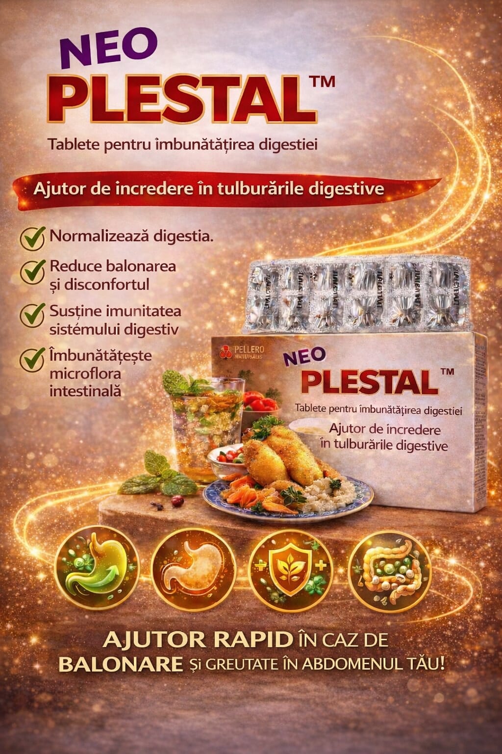 Indigestia, disconfortul în regiunea epigastrică, flatulenţa, balonarea sau un sentiment de greutate după masă reprezintă o cauză comună de iritare şi disconfort la mulţi oameni. Neo PLESTAL este o combinaţie dovedită de enzime digestive, care îmbunătăţeşte digestia şi asimilarea proteinelor, grăsimilor şi carbohidraţilor din intestinul subţire şi elimină anomaliile tractului gastro-intestinal.